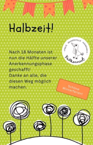 Von daher an dieser Stelle: ein herzliches Dankeschön an alle, die uns bisher so sehr unterstützt haben mit Geld- und Finanzspenden und bereits die erste Hälfte der Anerkennungsphase mit und für uns möglich gemacht haben!