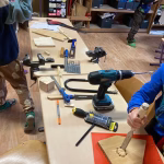 Montags wird immer fleißig gehämmert, gesägt und gebohrt. Zur Zeit arbeiten die Kinder gemeinsam an einem Vogelhäuschen.
