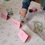Hier untersuchten die Kinder, welche Materialien und Lebensmittel in Wasser löslich sind. Dazu wurden erst Vermutungen angestellt, diese notiert und danach ging es in Gruppen ans Experimentieren.